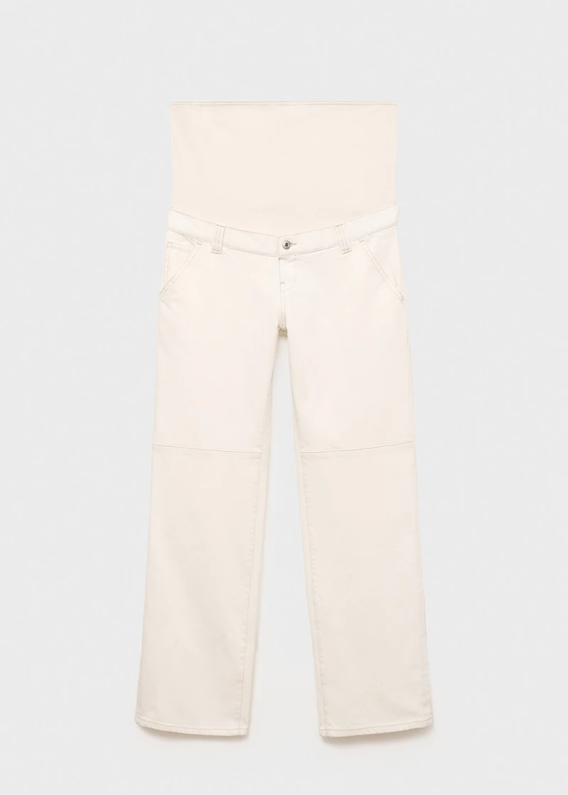 Denim-style cotton fabric. Long design. Wide-leg design. Low waist. Belt loops. Two side pockets. Soft elastic at front side waistband for added comfort and support the growing bump. Elastic waistband. Front button closure. We recommend you buy your usual size. Provides comfort and freedom of movement. Maternity. Online Exclusive.