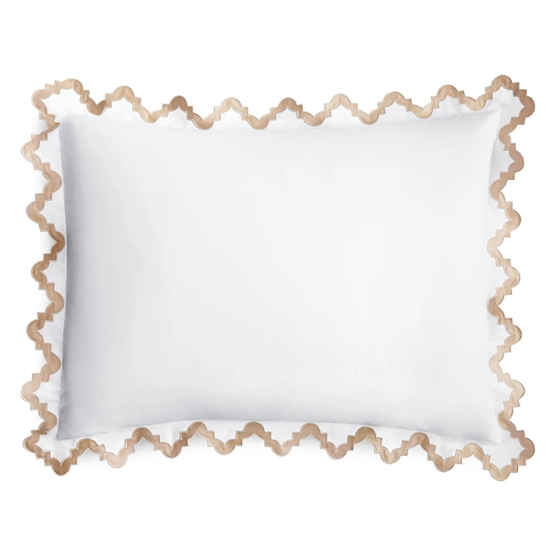 Time-honored Moroccan tiles inspired the zig-zag applique that defines Matouk's Aziza collection. True to the meaning of Aziza, "beloved", this elegant king sham-made from 600-thread count Egyptian cotton percale-will be a cherished addition to any master bedroom.
