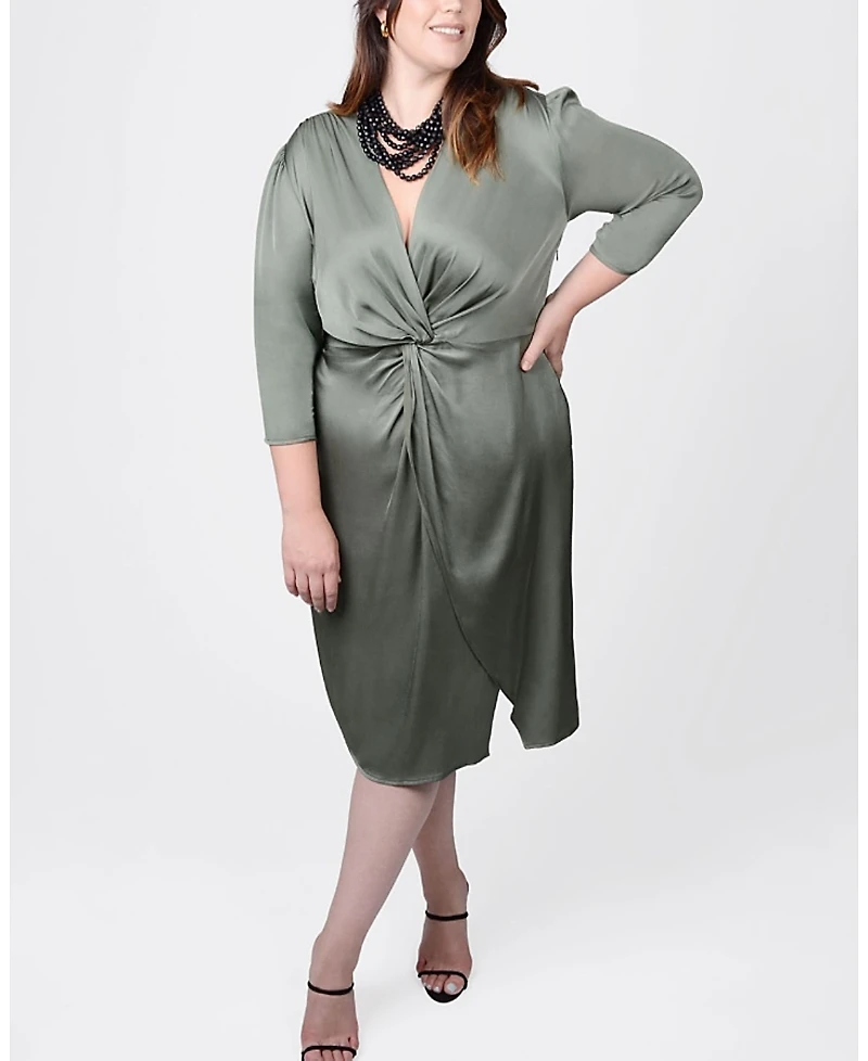 Mayes Nyc Elvie Knot Waist Dress.Color:Olive Green.Size:18.Material:Silk Touch - 100% Viscose SatinMade from sustainable EcoVero Viscose fibers100% recycled Polyester stretch lining.Dresses.