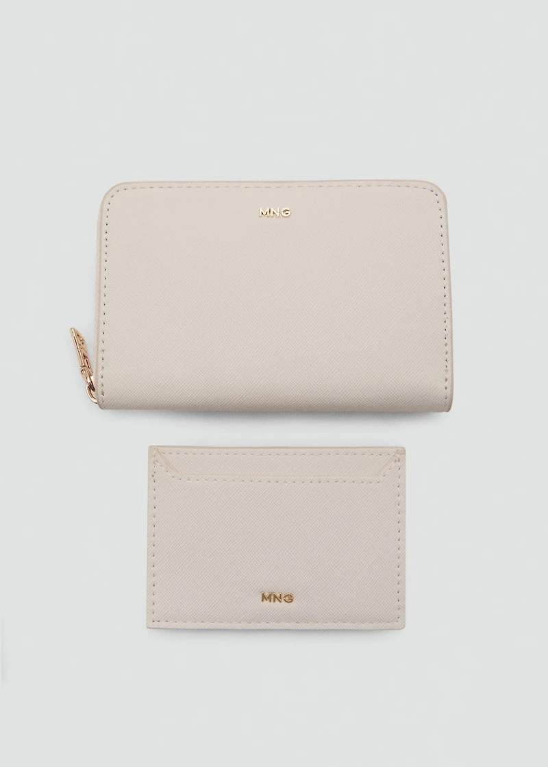 Medium size. Faux-saffiano leather. Embossed logo. Multiple card slots. Inner zipped pocket. Zipper closure. Leather effect. Zip fastening. Decorative seams.