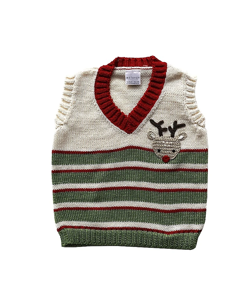 Melange Collection Unisex Knit Reindeer Vest.Color:Light Beige.Size:18M.Material:100% cotton.Sweaters.
