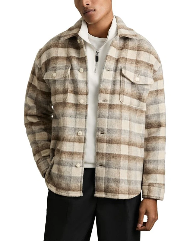 Reiss Men's Brushed Check Zip-Through Wool Overshirt