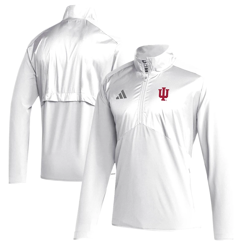 Men's adidas White Indiana Hoosiers Sideline Woven Quarter-Zip Pullover Top