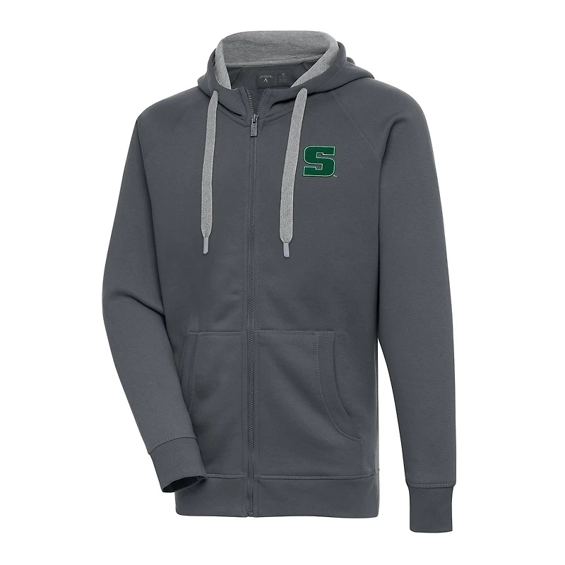 Men's Antigua Charcoal Slippery Rock Pride Victory Full-Zip Hoodie