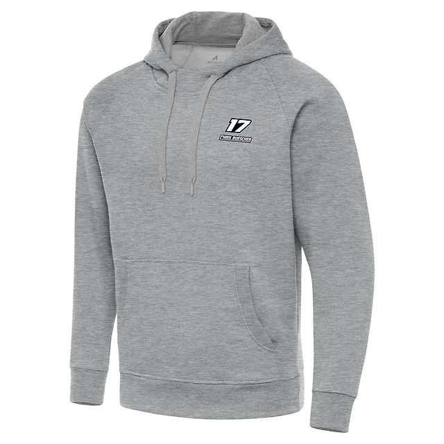 Men's Antigua Heather Gray Chris Buescher Victory Pullover Hoodie