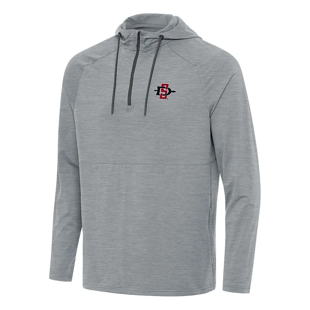 Men's Antigua Heather San Diego State Aztecs Spikes Raglan Quarter-Zip Hoodie