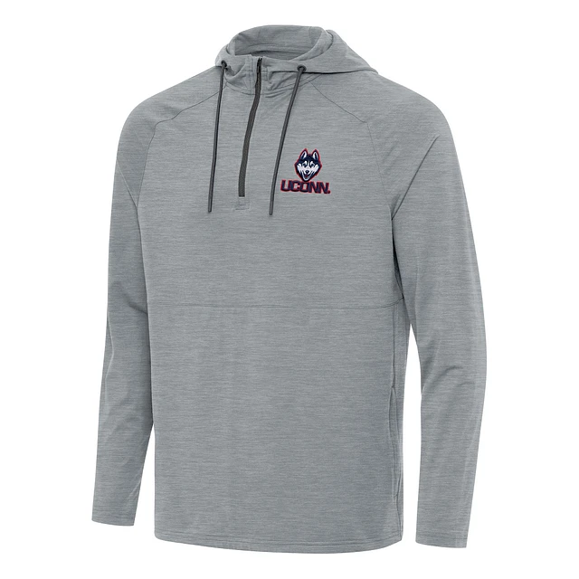 Men's Antigua Heather Gray UConn Huskies Spikes Raglan Quarter-Zip Hoodie
