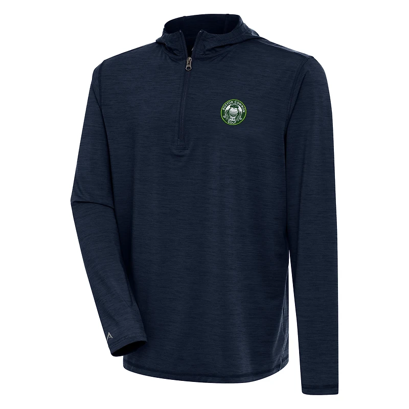 Men's Antigua Heather Navy TGL Boston Common Golf Tidy Quarter-Zip Hoodie