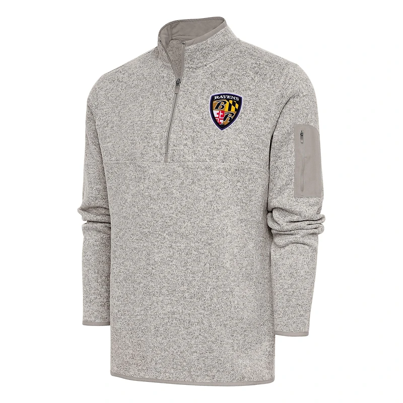 Men's Antigua Oatmeal Baltimore Ravens Throwback Fortune Quarter-Zip Pullover Jacket