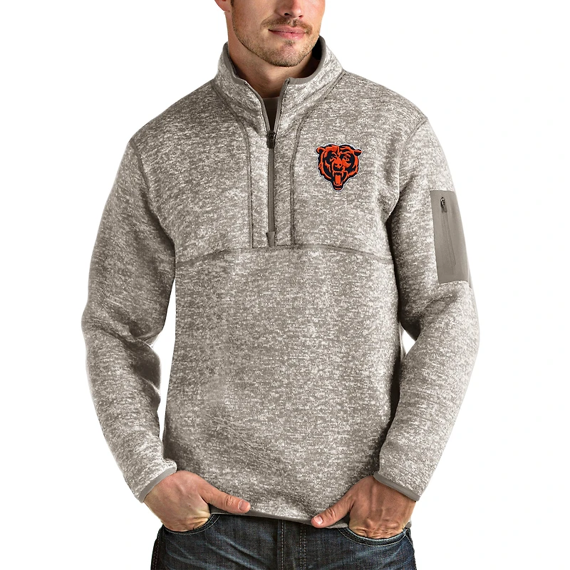 Shop Men's Antigua Oatmeal Chicago Bears Bear Head Fortune Quarter-Zip Pullover Jacket in Los Angeles, CA