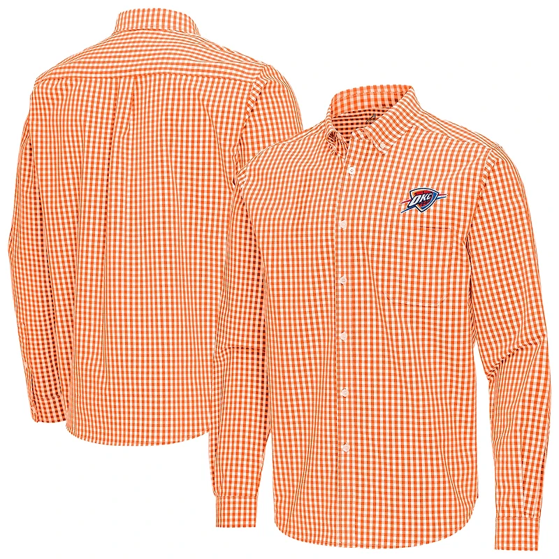 Shop Men's Antigua Orange Oklahoma City Thunder Ellis Woven Tri-Blend Button-Down Shirt in Los Angeles, CA