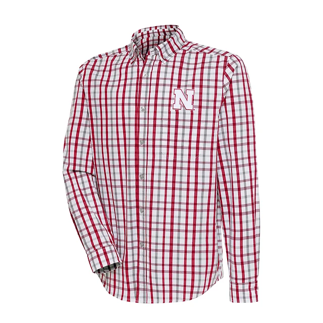 Men's Antigua Scarlet/Gray Nebraska Huskers Tending 2 Button-Down Long Sleeve Shirt