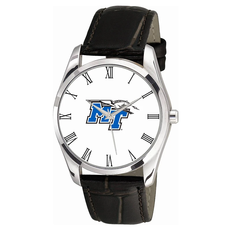 Never run late to the next MTSU Blue Raiders game by grabbing this Berkeley Leather Watch. The watch features printed MTSU Blue Raiders graphics that add a little bit of spirit when you check the time. Its stylish design makes it the perfect accessory to your game day outfit.