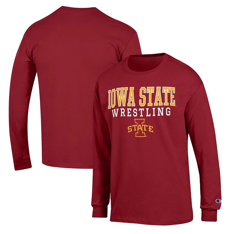 Shop Men's Champion Cardinal Iowa State Cyclones Wrestling Stack Logo Long Sleeve T-Shirt in Los Angeles, CA