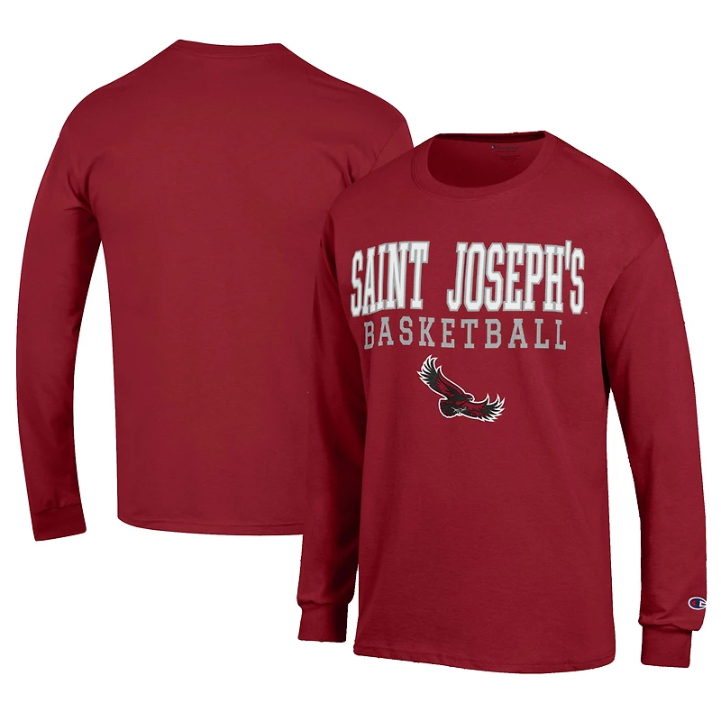 Men's Champion  Cardinal Saint Joseph's Hawks Icon Logo Basketball Jersey Long Sleeve T-ShirtMen's Champion  Cardinal Saint Joseph's Hawks Icon Logo Basketball Jersey Long Sleeve T-Shirt