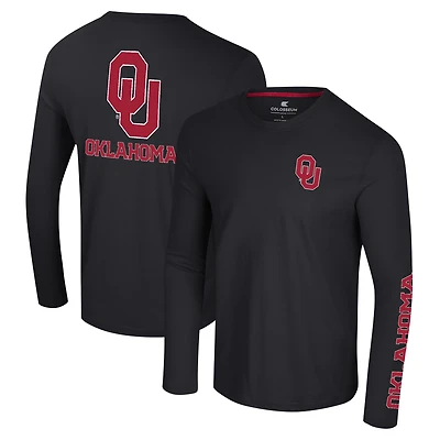 Men's Colosseum Black Oklahoma Sooners Logo Lockup 3-Hit Active Blend Long Sleeve T-Shirt