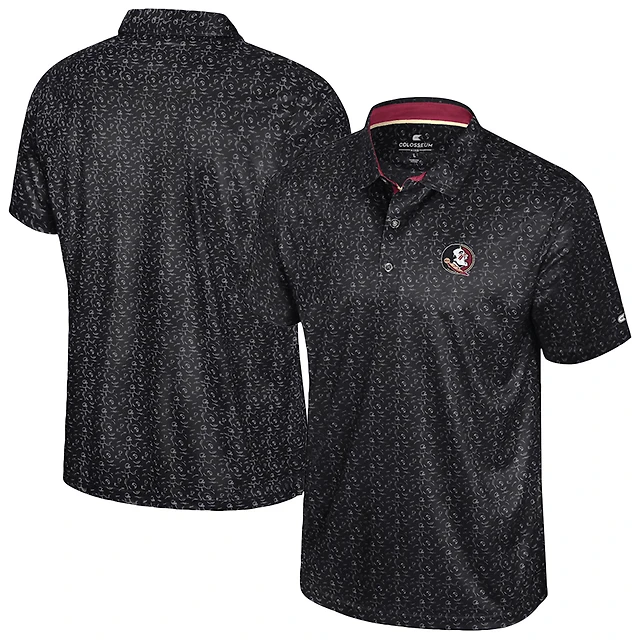 Men's Colosseum Black Florida State Seminoles Football Print Polo