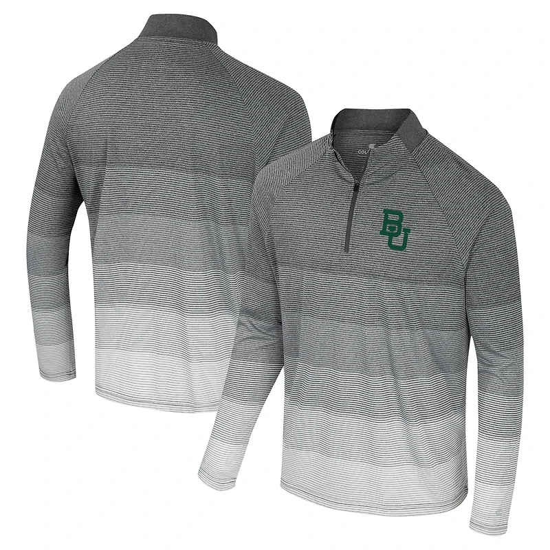 Shop Men's Colosseum Gray Baylor Bears AI Striped Mesh Quarter-Zip Raglan Windshirt in Los Angeles, CA
