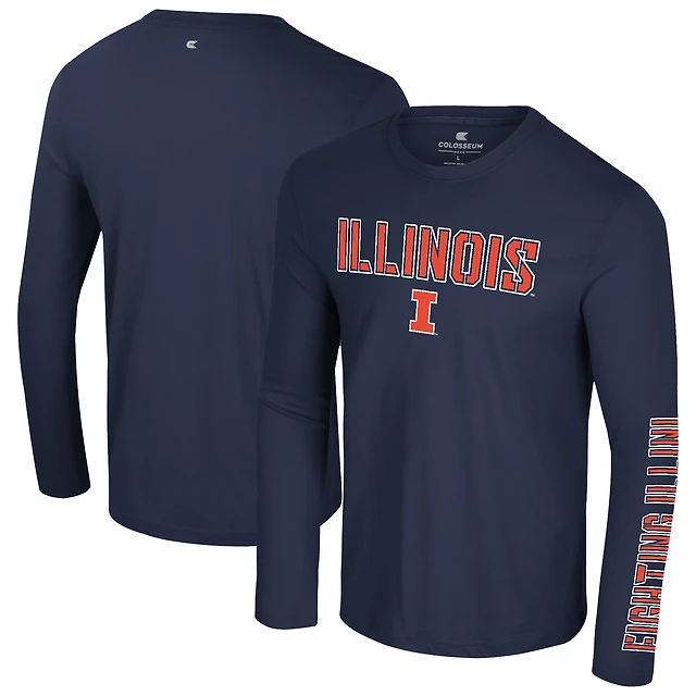 Men's Colosseum Navy Illinois Fighting Illini Color Pop Active Blend 2-Hit Long Sleeve T-Shirt
