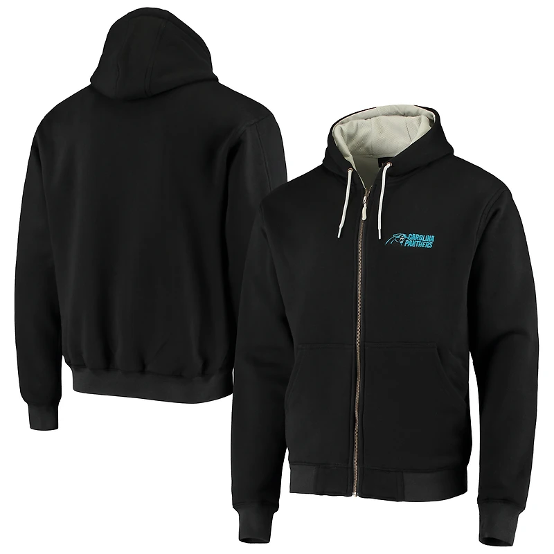 Men's Dunbrooke Black Carolina Panthers Craftsman Thermal-Lined Full-Zip Hoodie