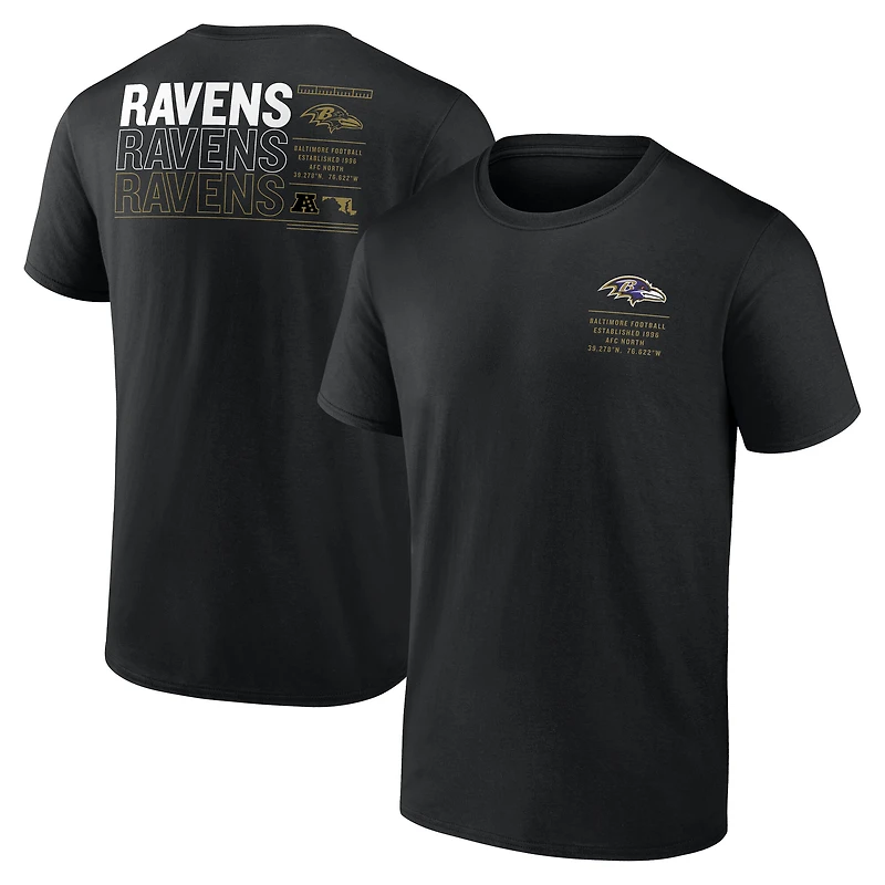Show your Baltimore Ravens pride with this Fanatics Repeat Stats T-Shirt. It features the team's logo, founding year, division and home coordinates on the front and stacked Baltimore Ravens details printed across the back. With its soft and durable cotton fabric, this classic tee is the perfect combination of style and comfort.