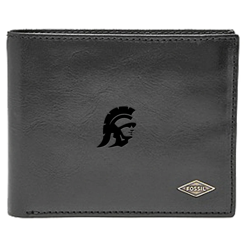Men's Fossil Black USC Trojans Leather Ryan RFID Flip ID Bifold Wallet