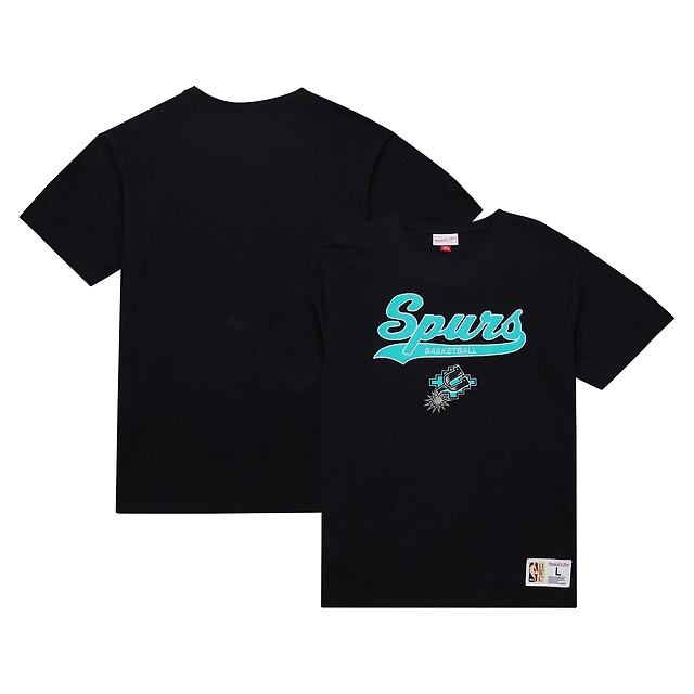 Men's Mitchell & Ness Black San Antonio Spurs Hardwood Classics Felt Applique Slub T-Shirt