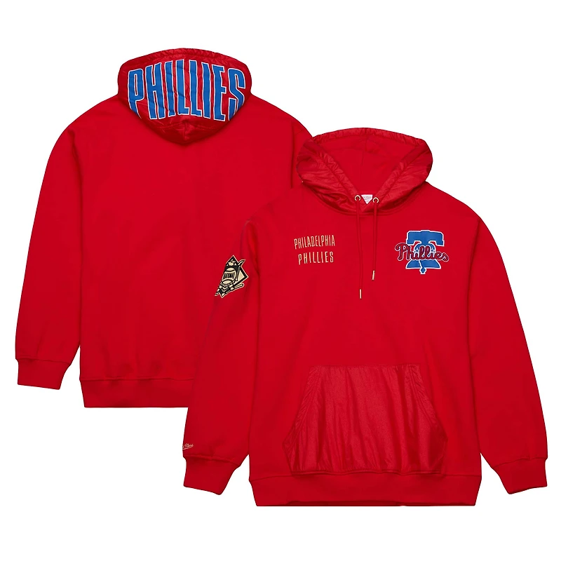 The Men's Mitchell & Ness Red Philadelphia Phillies Team OG 2.0 Current Logo Pullover Hoodie is the ultimate way to show unwavering support for the Philadelphia Phillies. With vibrant screen print and embroidered graphics, this hoodie proudly displays the iconic Phillies logo, leaving no doubt about your allegiance. The comfortable cotton and polyester blend ensures warmth and durability, making it perfect for cheering on your team from the stands or representing your favorite MLB franchise in style.