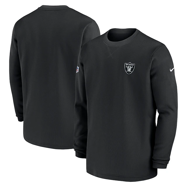 Men's Nike Black Las Vegas Raiders 2023 Sideline Throwback Heavy Brushed Waffle Long Sleeve Top