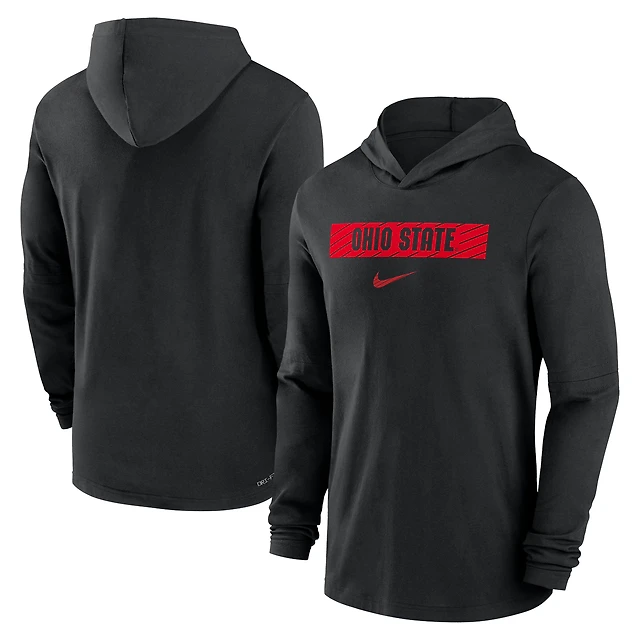Nike Men's Black Ohio State Buckeyes 2025 Sideline Performance Long Sleeve Hoodie T-Shirt