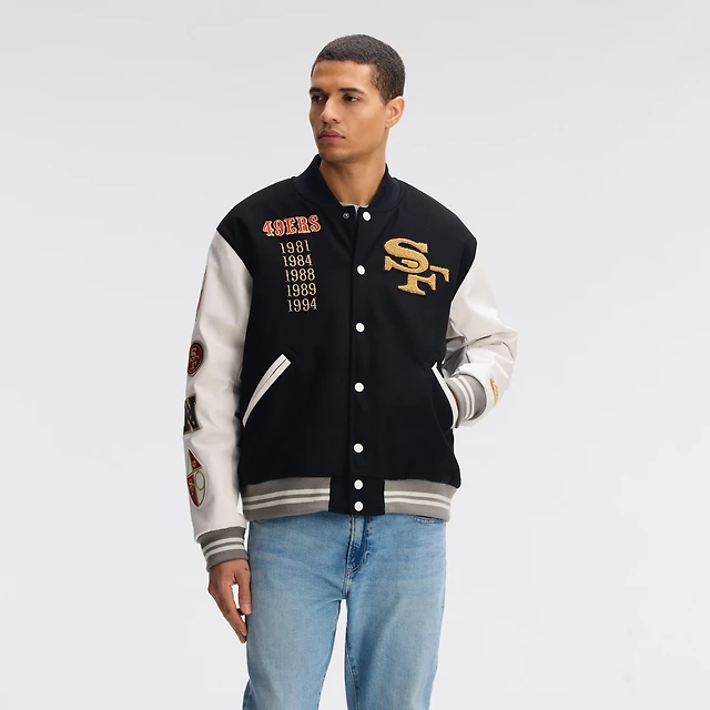 Men's Nike Black San Francisco 49ers 2025 Rivalries Collection Full-Snap Varsity Jacket