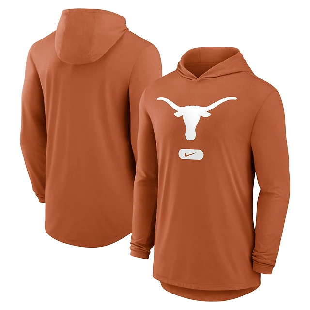 Nike Men's Texas Orange Longhorns Legacy Tri-Blend Dri-fit Long Sleeve Hoodie T-Shirt