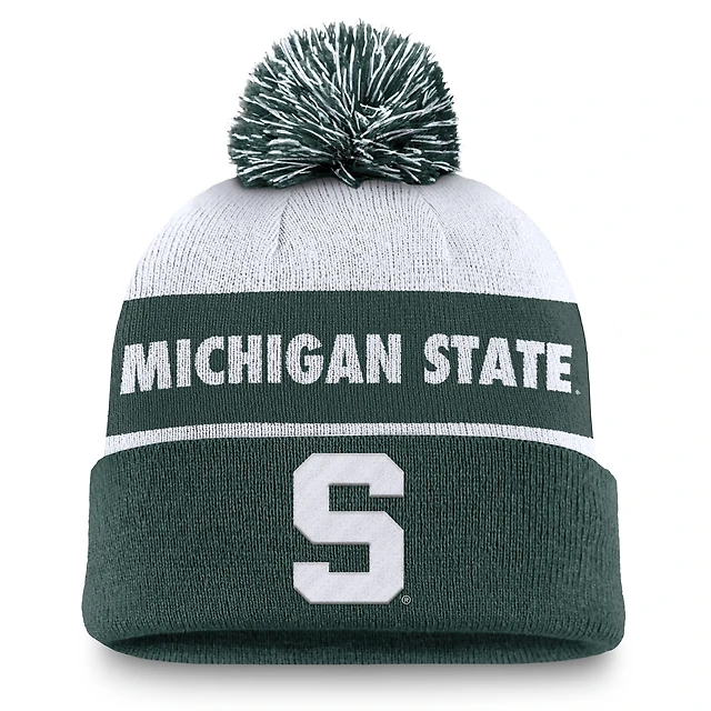 Men's Nike White/Green Michigan State Spartans Primetime Peak Cuffed Knit Hat with Pom