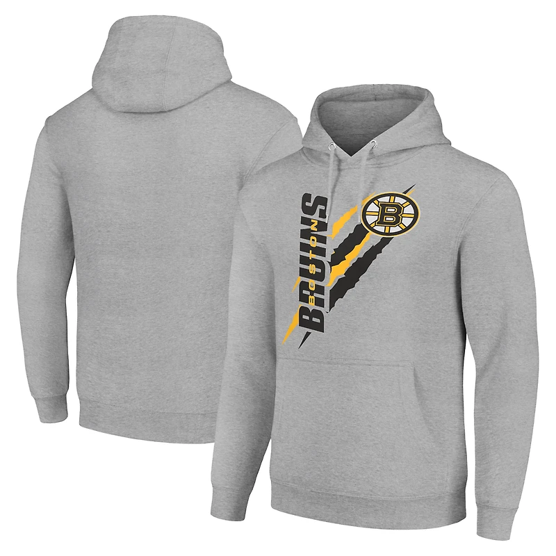 Shop Men's Starter Heather Gray Boston Bruins Color Scratch Fleece Pullover Hoodie in Los Angeles, CA