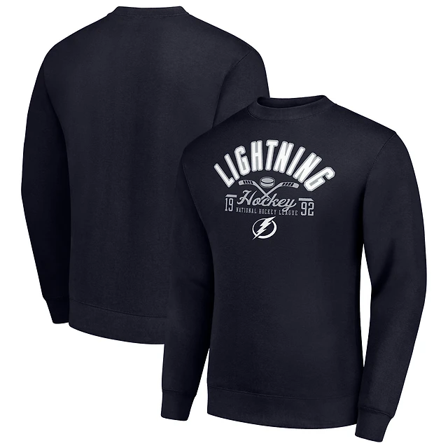 Men's Starter Navy Tampa Bay Lightning Stick And Puck Logo Fleece Pullover Sweatshirt