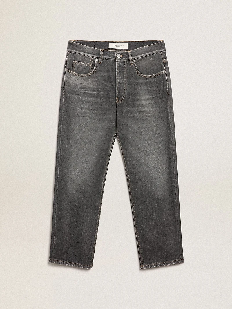 A unique, timeless collection that encapsulates the Golden Goose DNA, designed to remain with you every day, through thick and thin, come rain or shine. These loose-fit, wide-leg black jeans are inspired by the skateboarding world and feature a stonewashed treatment that makes every garment unique.