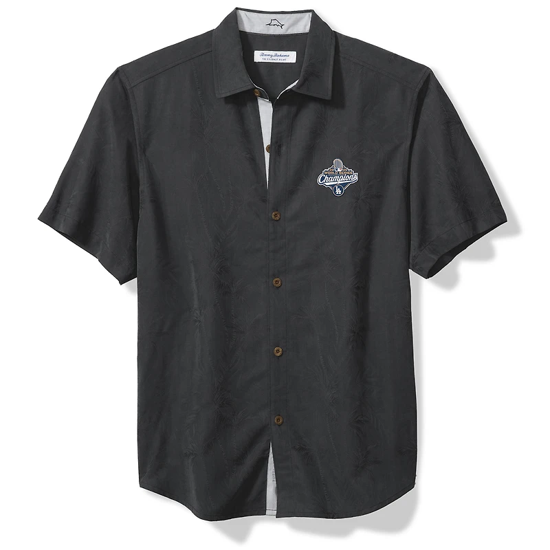 Men's Tommy Bahama Black Los Angeles Dodgers 2025 World Series Champions Coconut Point Palm Camp Button-Up Shirt