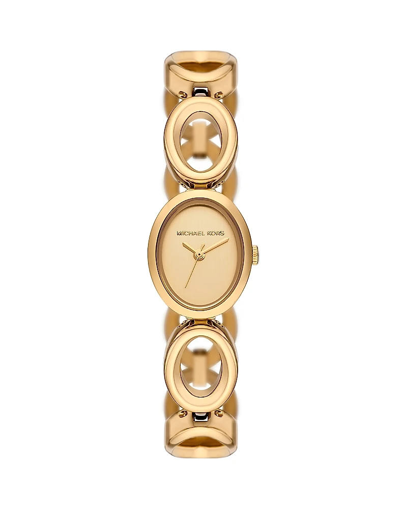 Based on Michael Kors' exclusive runway collection, the Maude watch boasts a sleek micro oval case and a jewelry-inspired open link bracelet. Perfect for day or evening wear, it delivers modern elegance with a sculptural twist.