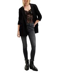 ABOUT THE BRAND AllSaints collections of womenswear, menswear, and accessories both serves and represents a global community of customers. Founded in 1994 by husband-and-wife fashion design duo Kait Bolongaro and Stuart Trevor, the brand’s name acknowledges the All Saints Road in Notting Hill and is still headquartered in London today. At the core of the collections is the concept of reliable, go-to outfitting customers can create for themselves without lacking uniqueness—a uniform without uniformity. Sourcing raw materials and reducing water usage, memberships with Better Cotton Initiative and Responsible Wool Standard, as well as SEDEX and the British Leather Confederation, AllSaints is committed to ethical production throughout the manufacturing process. This dedication to responsibility also encompasses the company’s culture, educating on diversity and maintaining an inclusive environment. FEATURES