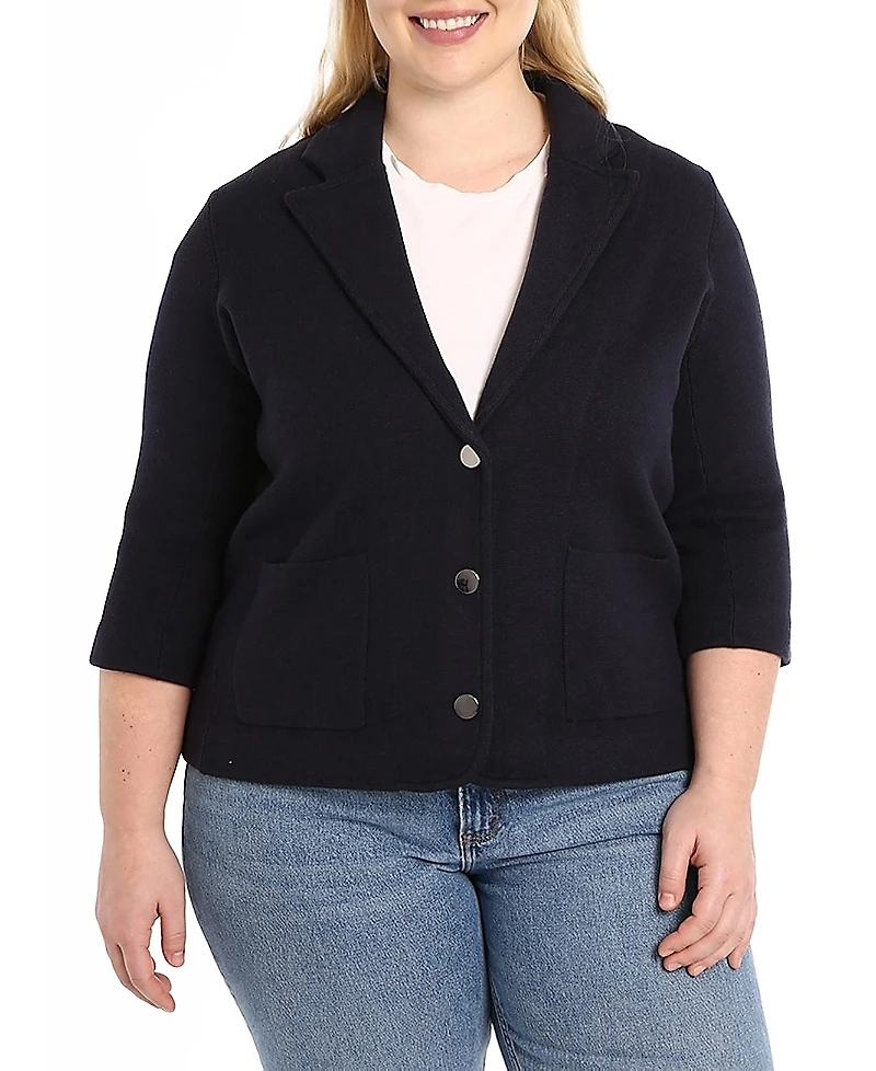 Minnie Rose Plus Size Cotton Blend Blazer.Color:Navy.Size:2X.Material:50% Cotton/50% Acrylic.