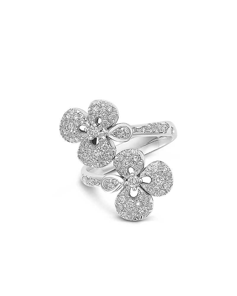 Shop Miseno Jewelry 18K White Gold Ischia Diamond Pave Flower Bypass Ring in Los Angeles, CA