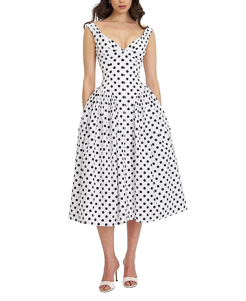 Miss Circle Rahma Polka Dot Drop Waist Midi Cotton Poplin Dress