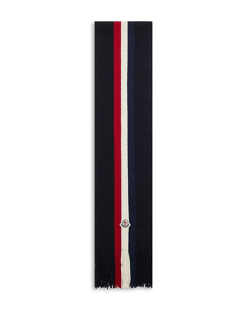 Moncler Tricolor Wool Scarf.Color:Navy.Size:One Size.Material:100% virgin wool.Scarves & Wraps.