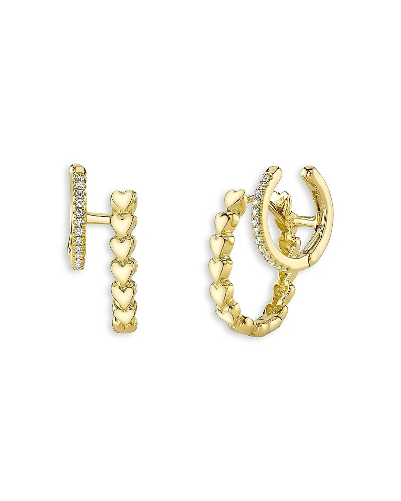 Moon & Meadow 14K Yellow Gold Kate Diamond & Hearts Double Hoop Earrings