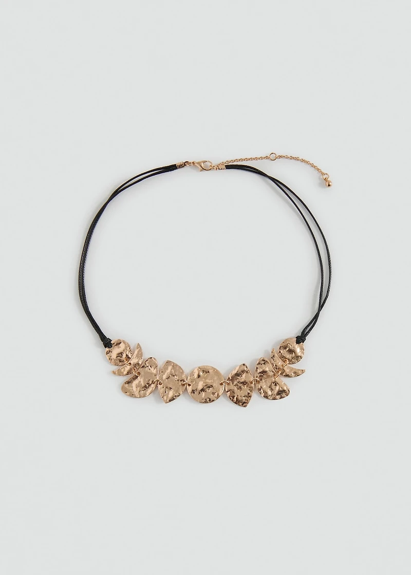 Moon pendant. Drawstring pendant. Metallic finish. Adjustable hook closure.