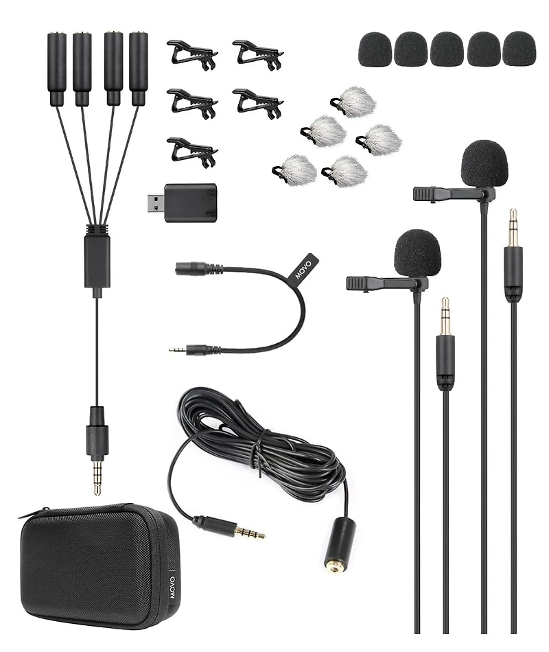 Looking for the ultimate solution to record a podcast on the go, or a simple and easy way to improve your audio while shooting vlogs? Movos VersaLav has you covered. Featuring dual lavalier lapel microphones, a convenient splitter cable and adapter that allows recording and monitoring for two people through one Trrs or Trs connection, and a simple Usb interface, the ultra-portable VersaLav gives you everything you need to make pro-quality voice recordings on any device. The VersaLav kit features two pro-quality omnidirectional cardioid condenser lavalier microphones, which offer superior pickup for recording voice. Youll also get 5 extra foam windscreens and 5 furry windscreens, ensuring youll always have extra wind and noise suppression on hand. Both lav mics connect via the included cable splitter, which provides two inputs as well as two headphone outputs, allowing recording and monitor for two. The Trrs splitter allow you to record directly to any smartphone or tablet with a 3. 5mm Trs connection, or to a lightning or Usb-c smartphone adapter. Also included is a Trrs to Trs adapter, allowing the VersaLav system to connect and record with any device with a Trs audio input, such as a Dslr and mirrorless digital cameras, audio recorders and more. A 20-ft extension Trrs cable gives you ample room to set up for your recording session or shoot. The Usb interface will sync instantly with any Windows or Mac computer, no drivers necessary. All components fit easily into included hard-shell case. All Movo products are covered by our