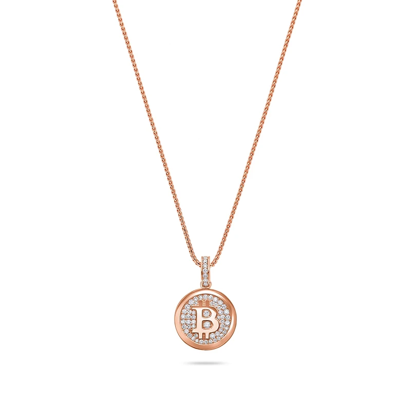 Originally introduced to the public in 2008, the Bitcoin has come a long way. The Bitcoin was brought to public light by Satoshi Nakamoto to be fully transparent, anonymous and decentralized currency system for the world, which has gained much traction and attention to the public today. This gold Bitcoin necklace is designed for Bitcoin enthusiasts worldwide. Created specifically for believers of the currency Bitcoin, the future of money is at the hands of the people. Here is our version of the original Bitcoin made into a gold Bitcoin necklace, crafted in the gold color of your choice. This gold Bitcoin pendant can be the perfect gift for any cryptocurrency enthusiast or awarded to miners in the trade as a token for achieving success within the block chain. Partially iced out with round diamonds. Matching chain included. Total diamond weight about 0.35 carat. Total height approximately 0.9" tall. Nano sized.