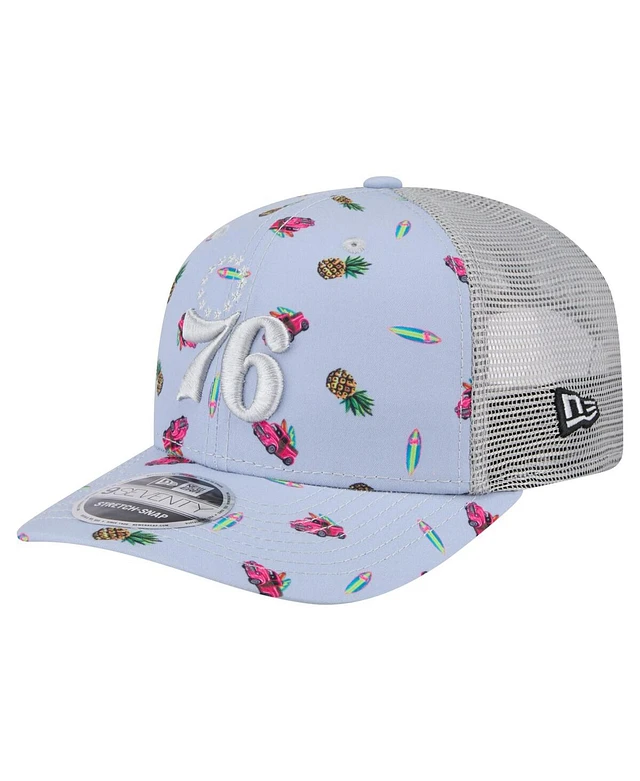 New Era Men's Light Blue/Gray Philadelphia 76ers Adventure Aloha Pattern 9SEVENTY Stretch-Snap Hat