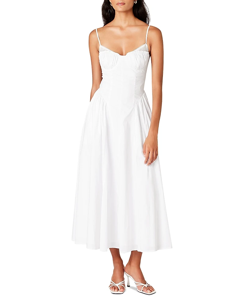 Nia Alice Poplin Dress.Color:White.Size:S.Material:Shell: 65% cotton/35% polyester; contrast: 85% nylon/15% spandex; lining: 97% polyester/3% spandex.Dresses.
