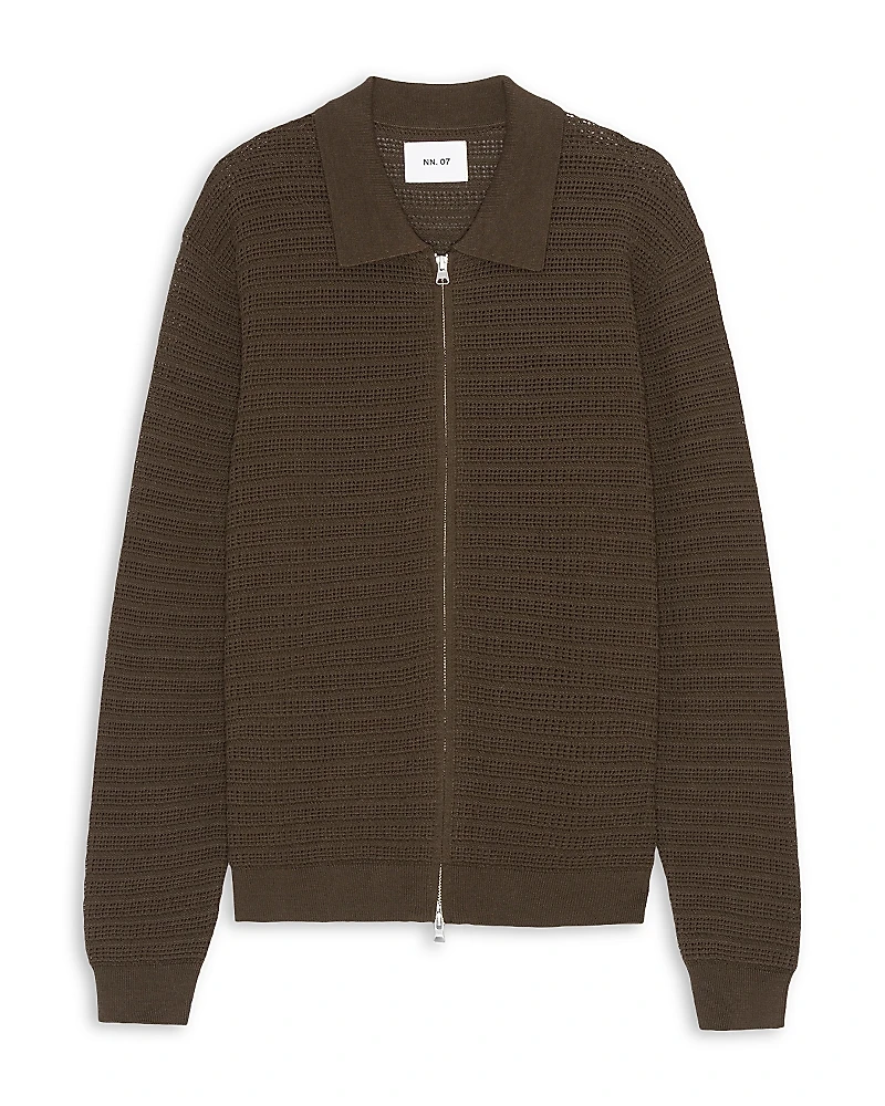 NN07 Gustav Long Sleeve Zip Sweater.Color:Demitasse.Size:Medium.Material:100% cotton.Sweaters.